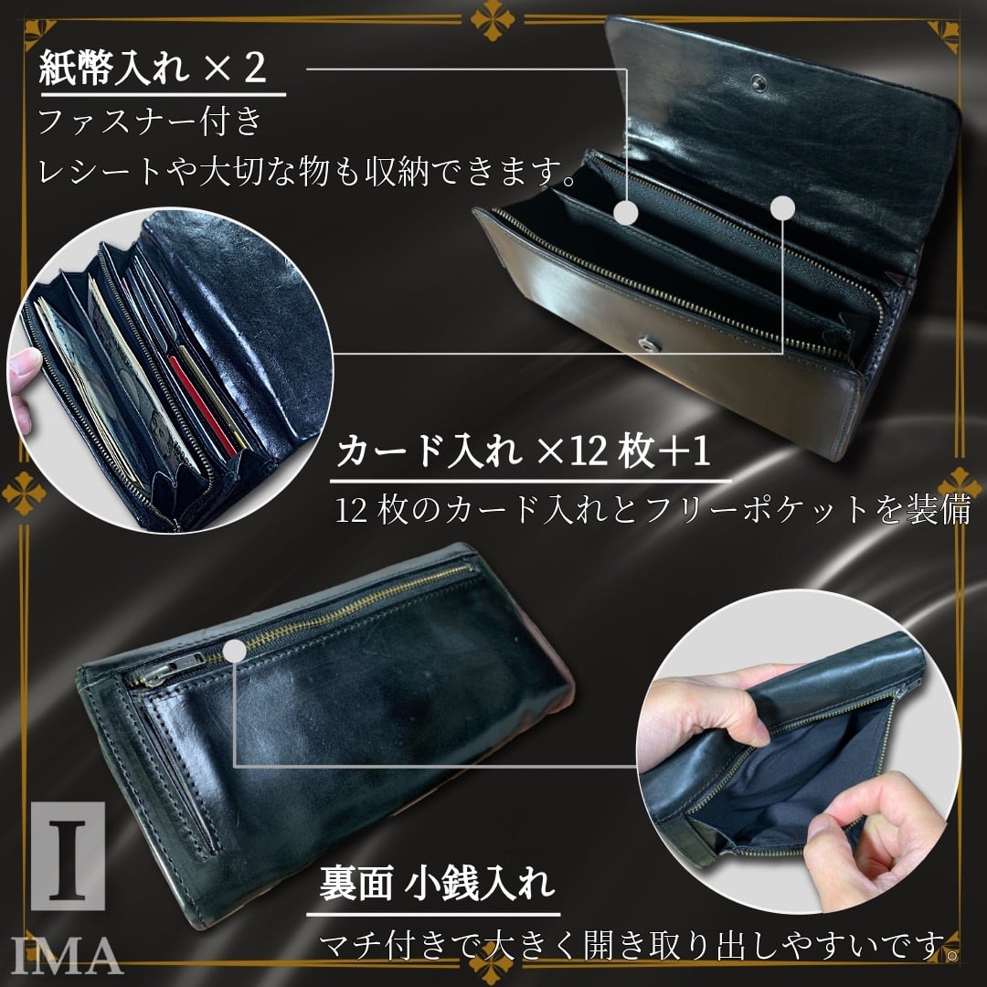 上質な本革で丁寧に仕上げた、使い勝手と美しさを兼ね備えた長財布。鍛錬された職人によるハンドメイド長財布。使えば使うほど、革の味わいが生まれレトロな雰囲気が現れます。あなただけのオリジナリティのある革財布に変身。