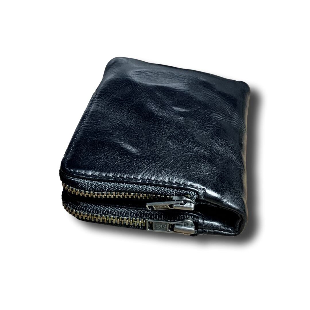コイン入れは日常使いに便利なだけでなく、もう一つのファスナーポケットは免許証やマイナンバーカード、ご自宅のカギといった特に大切なものを収納するのに理想的なスペースです。 大人の落ち着きとステータスを象徴するこの財布は、20代から50代の男性に至るまで幅広い世代にご愛用いただけるアイテム。